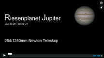 Jupiter rotiert innerhalb von 9 Stunden und 50 Minuten um seine eigene Achse. Diese Bewegung können Amateuere nutzen, um seine Rotation im Film festzuhalten.